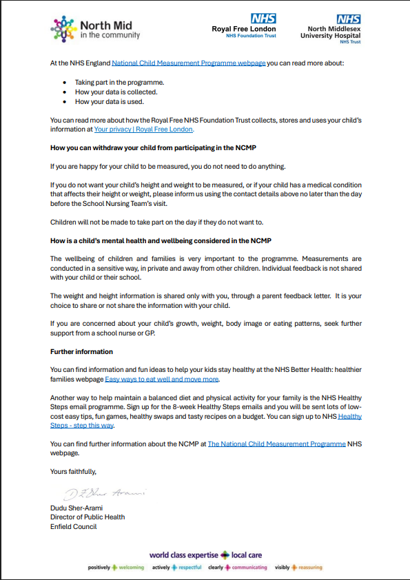 Reception & Year 6 – National Child Measurement Programme